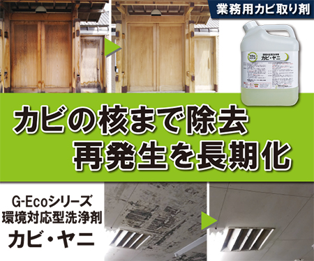 | 2021/05/07 | 沖縄・奄美が梅雨入りしましたが、「カビ(真菌)」の発生しやすい梅雨を迎えるにあたりカビが発生した際のカビ取り、カビ対策などを業務用カビ取り剤のG-Ecoシリーズ環境対応型洗浄剤カビ・ヤニ、防カビ・防菌剤のG-Ecoシリーズ水系防カビ・防菌剤、環境対応型特殊洗浄G-Eco工法でこれまでカビ(真菌)や汚れと向き合って蓄積した経験とデータを基に記載したいと思います。 |